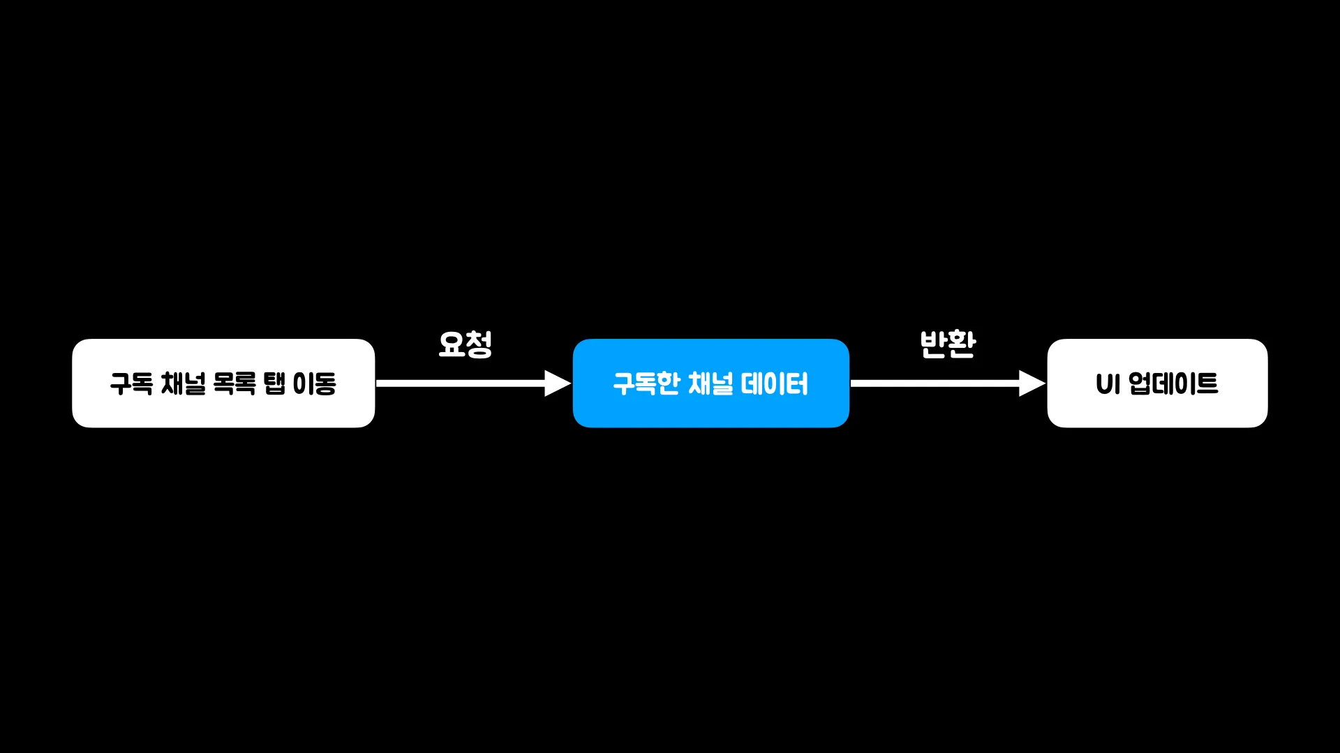 유저가 자신의 구독 채널 목록을 확인하기 위해 해당 탭으로 이동하면 앱은 서버에 요청을 보내 구독한 채널 데이터를 불러오고 화면에 표시합니다.